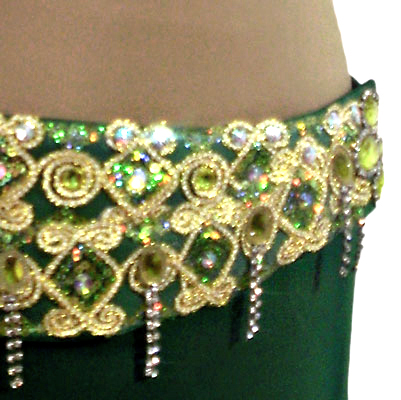 Cinturão para dança do ventre em malha e tecido fantasia dourado.